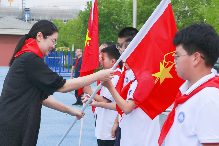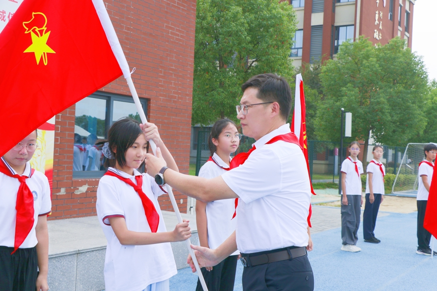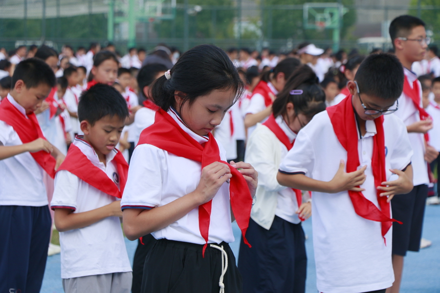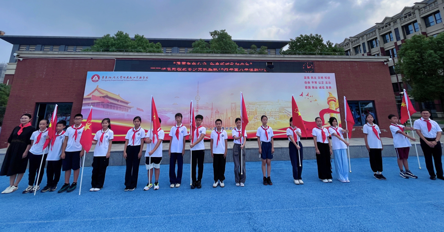日前,华东政法大学附属松江实验学校举行“强国复兴有我 争当新时代好少年”建队节暨六年级换巾仪式,以青春之名致敬中国少年先锋队建队76周年。